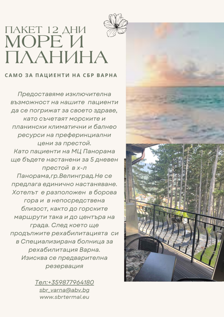 After that, you will continue your rehabilitation at the Varna Specialized Rehabilitation Hospital.